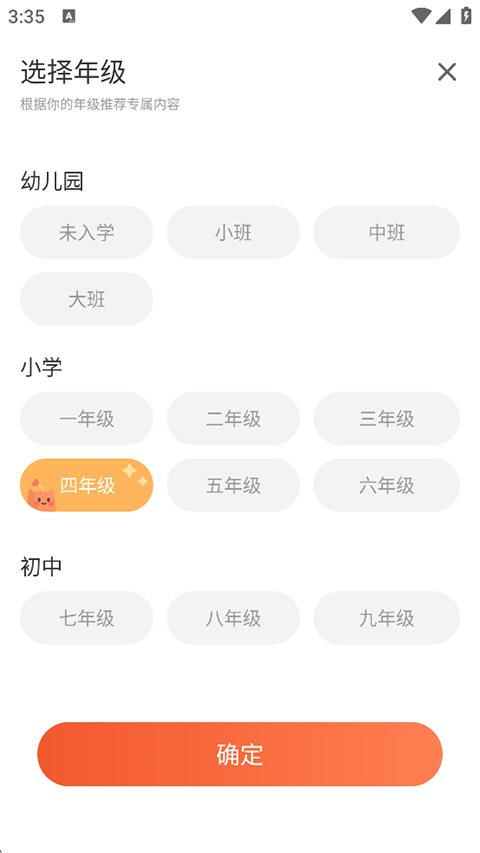 3、还需要选择好自己的目的所在的年级,方便软件推荐相关的内容;