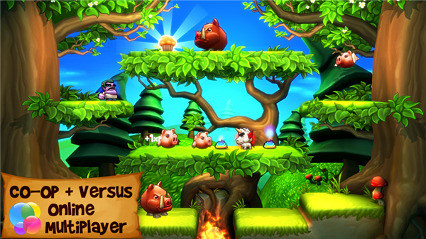 1、童话式游戏画面 绝妙的2.5D 画面,充分利用最新集成引擎特色。从神奇的手画艺术品中,发觉多姿多彩的迷人世界。 2、可爱至极 扮演拥有独特的攻击技能18个不同角色。用独特的方式包围龙,乌龟,狼人,幽灵,蝙蝠,妖精和其他可爱毛茸茸动物。 3、游戏难度设置 升级、解锁新人物以及提升能力。 六个技能能够在追寻小松饼时给你带来附加能量。 4、史诗级Boss战 最后你要击败邪恶的火山王来证明你的能力。 5、跨平台多人游戏 在iphone,ipod,ipad或安卓设备上挑战玩友,进行激烈直接的多人比赛。游戏亮点