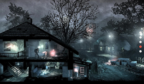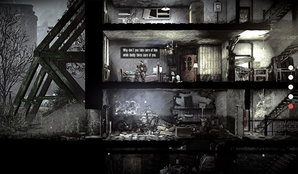 1、搭建避难所: 白天大部分地区都处于交战状态,游戏设定白天外出街道上有狙击手(哪管好的坏的=_=,看见会动的就打)所以玩家操纵的角色在白天只能呆在家里活动,这段时间玩家可以操纵角色修复避难所的破洞增强防御,也可以搭建更多的设施,疲劳的角色也可以在这段时间休息。其他幸存者也有几率拜访交易或者寻求帮助,玩家可以与他们交易或者帮助他们(帮助他们有几率让出去帮助的那个角色受伤)。 2、人员分配: 当进入夜晚后,玩家需要分配所有角色的工作,睡觉、守夜以及搜寻物资,守夜和搜寻物资的角色第二天都会疲劳,疲劳的角色各项属性都会大幅度降低(角色也可以在白天睡觉消除疲劳),守夜的角色可以防止在夜晚遭到抢劫,武器和守夜人员越多,抢劫成功的几率和守夜人受伤的几率越少。守夜的成功与否与角色也有关系,小偷女和逃兵哥这些战斗力比较强的守夜成功率高,也更难受伤,战斗力弱的角色守夜更容易被抢,也更易受伤。 3、搜索资源: 黑夜大部分地区的战争都会停息(有些地方有几率陷入交战状态,无法进入,大概8—10天),玩家可以趁这段时间操纵角色去其他区域的废墟搜寻物资,不同的地方,物资种类的多少也不同,有些区域会存在幸存者,如果玩家露出武器或者进入禁区会遭到幸存者的警告以及攻击,偷窃幸存者私有的物资也会遭到警告以及攻击(只要没被发现,比如关着门在里面偷),也有些幸存者愿意同玩家交易。也有可能遇见土匪,土匪一旦看见玩家所操纵的角色就会进行攻击,几乎所有土匪都持有枪支,玩家前期很难正面杀死土匪。(地图如果介绍谨慎,那就是有无辜民众或不带枪的士兵,危险一般指带枪和武器的军人) 4、合成制造: 玩家所操纵的角色可以在白天使用工作台制造武器、工具或者建造设施、修复避难所破损处,建造不同的工具、设施,需要的材料也不相同,某些拥有特殊天赋的角色制造物品时只需要更少的材料。工作台的等级也影响着可制造的物品以及设施。合理利用角色天赋能更轻松的游戏,比如厨师可以只用一滴水和一个燃料制作熟食,马林可以用更少的材料制作物品,清道夫可以更快的清理废墟。