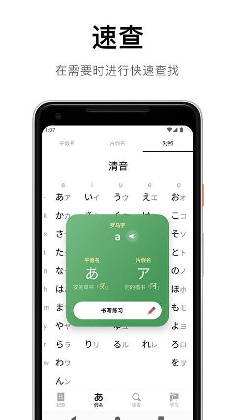 速查表可以在你需要的时候,快速找到那个你想了解的假名。