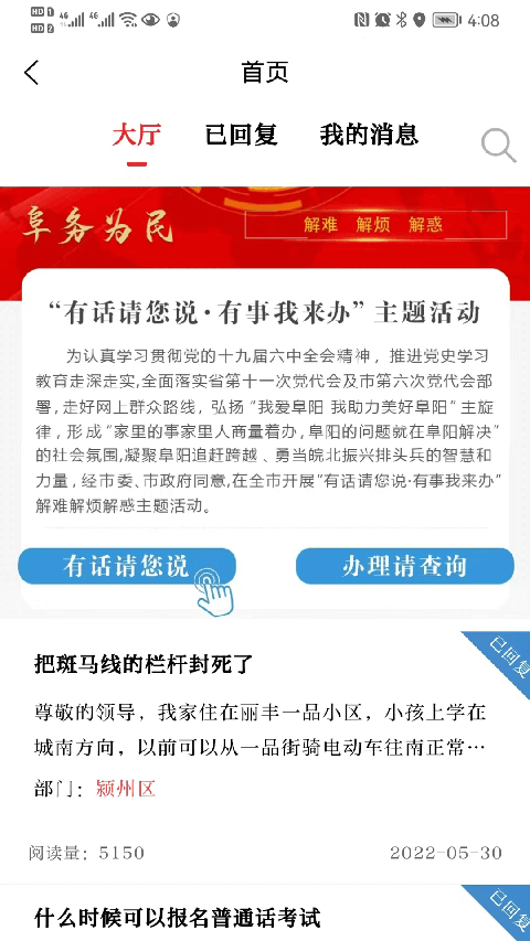 5、在您说页面中,你可以发表你的问题,当相关的部门看到你询问的问题时即可给你答复;