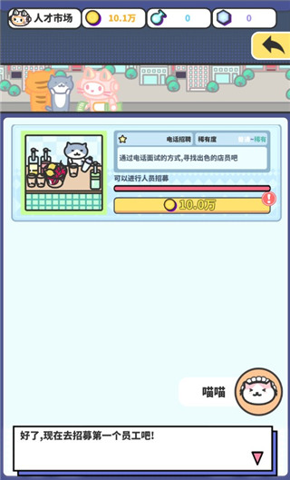 1、丰富的经营模式,体验更加精彩的生活,多多的赚金让客人满意。 2、这是一个可爱有趣的模拟经营游戏,简单的合成玩法,丰富的游戏系统和收集图鉴,玩家可以亲手打造一个火爆的网红奶茶店。 3、您可以招募最可爱网红猫,研究最强奶茶配方,提升店铺人气和吸引力。 4、游戏中给奶茶店做宣传,赚取收益吸引客人,提供额外定制服务。更新日志
