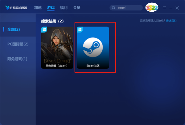 5、加速成功后点击启动游戏即可启动Steam平台,如果本地没有安装Steam,可在本站搜索Steam进行下载,目前游帮帮加速器是免费加速Steam平台的,快来体验一下吧!