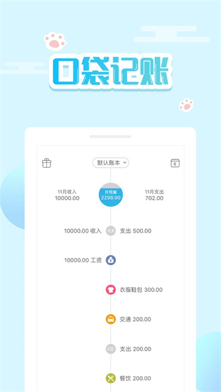 1、拥有完整的记账功能体系,内容涵盖预算、账户、报表、消费明细等; 2、支持消费数据导出到邮箱、数据记录备份存储到云端、换肤等功能; 3、从界面到交互到技术支持,我们模拟了上百次你的操作力求让你得到最顺心的体验。功能介绍