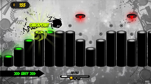 当然《永不言弃2》高分只会跳跃还不够,因为闯关的过程中我们还将遇到各种陷阱由于小墨点会一个劲地前进,所以对于面前袭来的陷阱,我们需要机智地进行躲避,对于玩家的反应能力相当考验,容错率极低,只要在对应点位没有正好按下就会以失败告终。