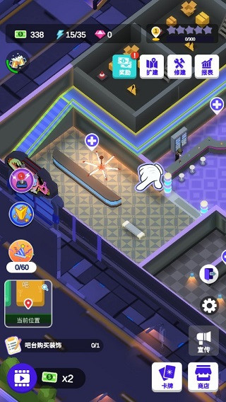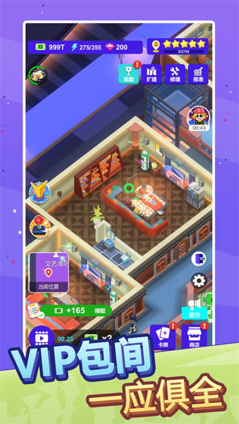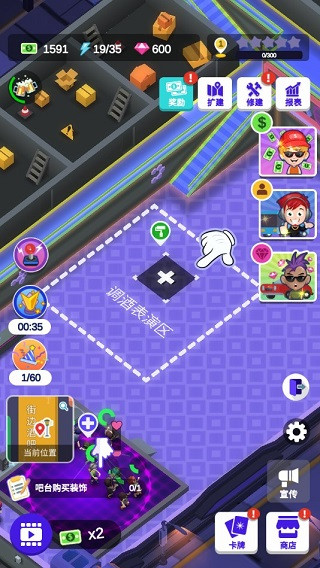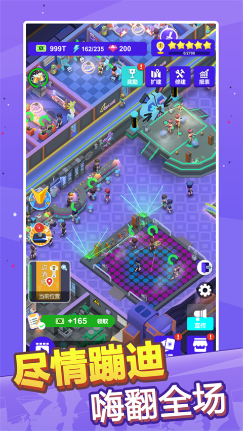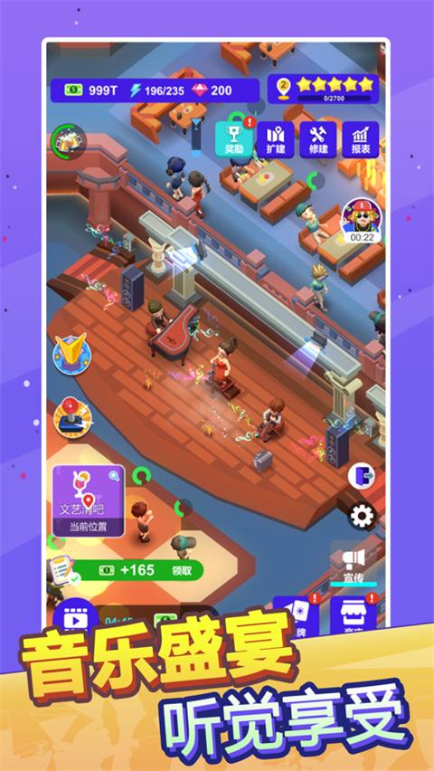 1、丰富的场景,打造相应的配套设施,为人们提供更好的环境 2、打造全新的表演舞台,每天都有各种各样的表演在这里开启 3、欢乐的音乐,很容易就能够活跃现场的氛围,让顾客放松心情 4、招聘更多有才能的人来你的酒吧做事,共同打造更好的酒吧 5、可以不断开拓新的业务,举办新的活动,让人们总能有新的体验 6、根据自身的能力去不断升级里面的设备,面对酒吧里面的各种突发情况也能够从容应对酒吧不夜城苹果版攻略