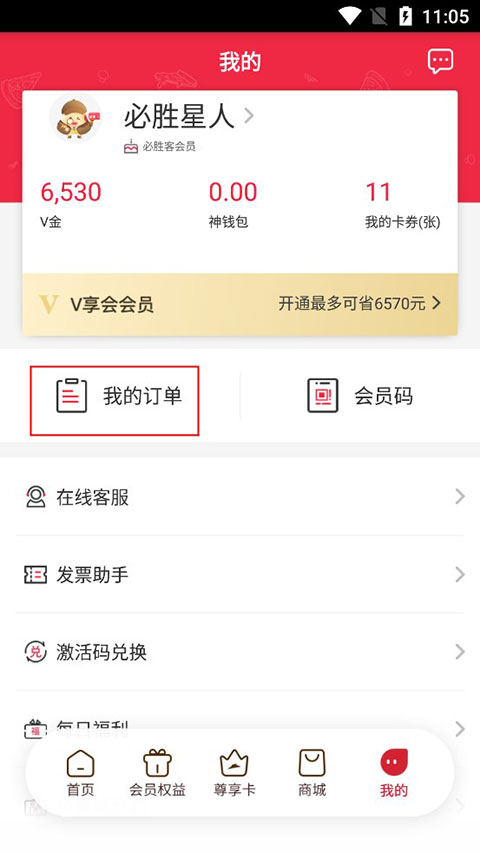 1、先在功能栏中,找到我的,然后选择我的订单。