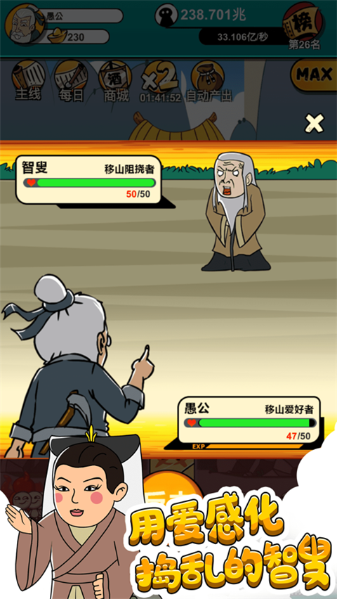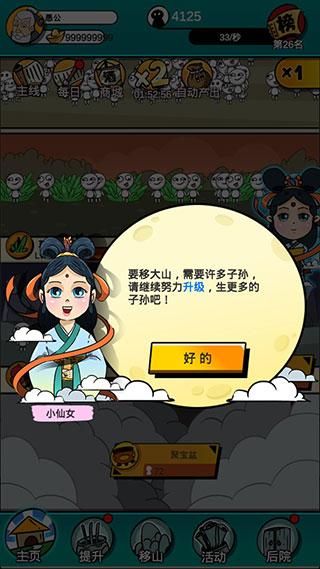 1、花样生孩子,是你各种意想不到的方式。 2、操作简单,只需要点点点就能不断升级,不断生孩子。 3、生孩子速度再加倍,体验数值爆炸的快感。 4、孩子越多,移走的大山越多,移遍各大名山。 5、愚公和智叟的经典对决,剧情搞笑不容错过。 6、收集愚公族谱成员,解锁子孙形象。愚公特能生上手指南