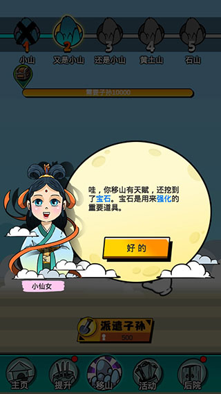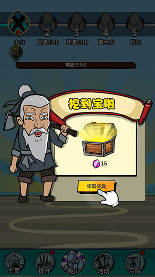 10、哇,你移山有天赋,还挖到了宝石。宝石是用来强化的重要道具。