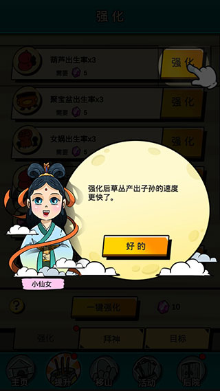 3、1级的草丛生出子孙太慢了,提升草丛等级,加速子孙出生。