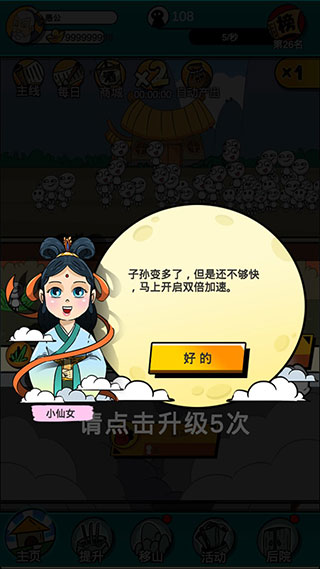 4、子孙变多了,但是还不够快,马上开启双倍加速。。