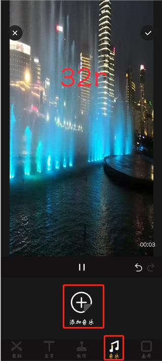7、当然,软件还可以添加音乐,用户点击软件中的音乐,再次点击添加音乐,选择用户需求的音乐即可