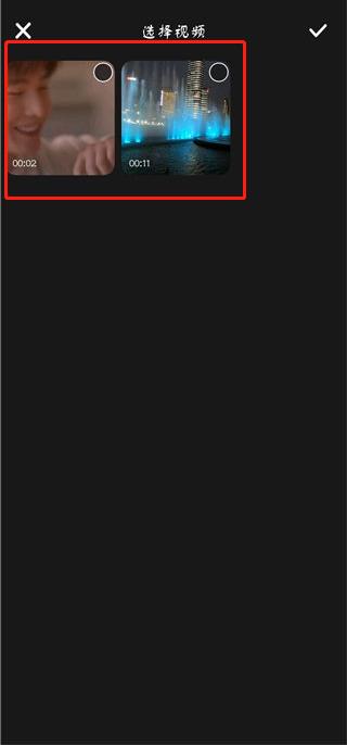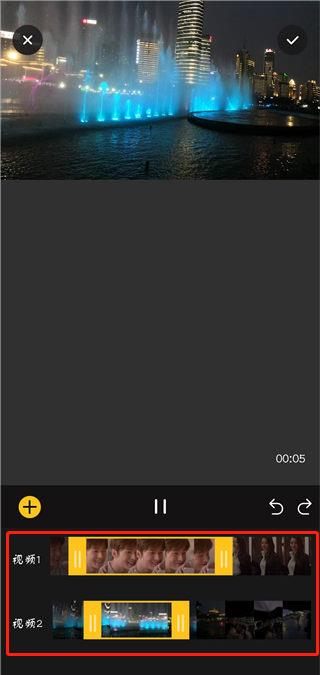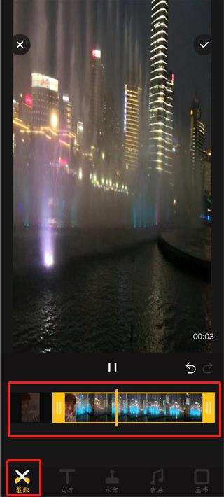3、如下图,先大致设置一下视频拼接,设置完成点击√