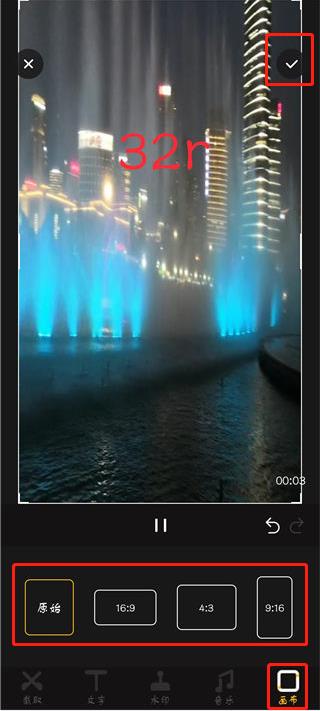 8、如果视频画布不协调,用户也可以在软件中点击画布,设置一个用户需求的画布,设置完成点击√即可拼接完成