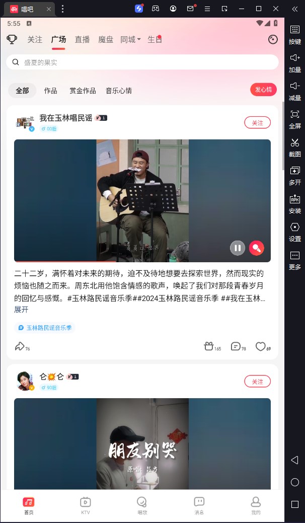 唱吧电脑版是需要借助模拟器在电脑上运行的一款音乐K歌软件。软件内有着上百万高品质伴奏,用户可以选择自己喜欢的歌曲伴奏进行演唱录制,更有AI修音等修音工具,可以将你的声音进行修饰美化,让用户可以大胆录制歌曲,无需担心自己唱的不好。