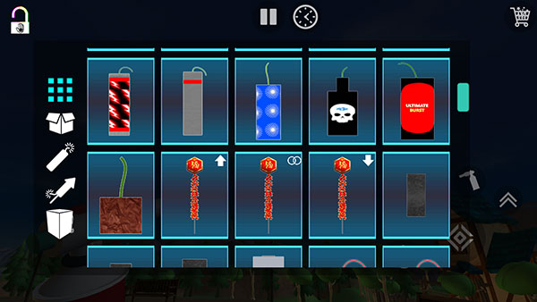 7、点击右上角的购物车图标,还可以选择更多的烟花种类来进行燃放。