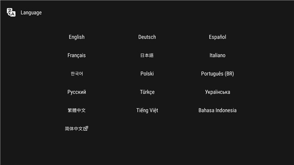 1、进入游戏界面之后,选择你喜欢的语言