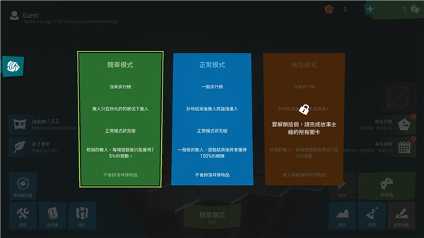 2、选择简单模式或者正常模式,还有一个模式,要完成故事主线的所有关卡才能开启