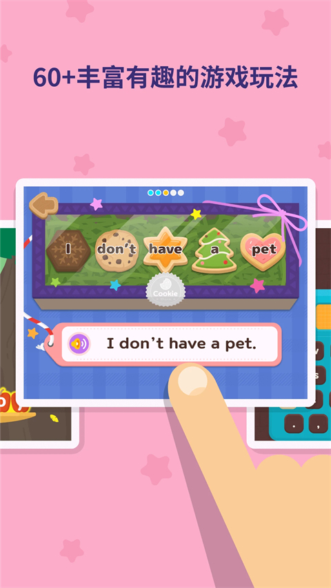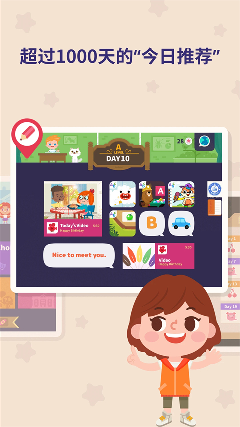 1、Alphabet - 26个字母学习。 2、Phonics – 超过百种自然拼读法的学习。 3、Words – 包括基础单词和视觉单词学习,通过每天推荐的资源接触常见词汇。 4、Reading & Comprehension – 绘本阅读,提高通过阅读获取知识的能力。 5、Speaking & Writing – 游戏化设计,快乐无压力的进行开口练习和写简单文章。 6、Culture & Manner – 帮助孩子了解欧美当地文化和同龄孩子们的生活。推荐理由