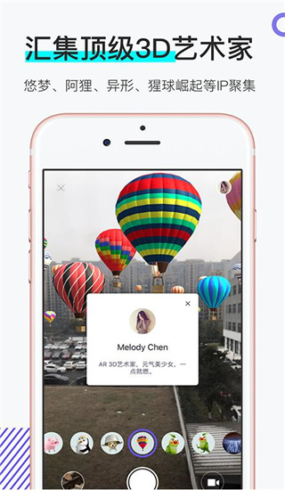 1、自研黑科技: 自主研发的AR黑科技,实时基于真实世界,虚实相生,世界即屏幕! 2、多场景体验: 支持图片、平面、人脸、3D物体等多种识别方式,多场景体验AR科技。 3、真实感渲染: 基于实时渲染的优质AR内容制作实力,打造亦真亦假的奇幻视觉盛宴。 4、创造性互动: 眼花缭乱的创意巧思,灵活多变的信息表达,为用户打造前所未有的互动体验。功能介绍