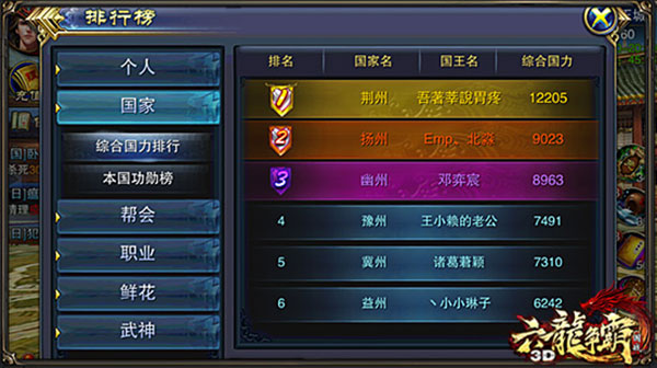 1、360度全视觉,真3D画面 3D全景自由视觉,360度无锁死。粒子技术、真3D画面、硝烟弥漫的战场、火攻石攻的打法,欣赏电影级画面的同时,更能体验到真实战斗的无尽快感! 2、美女指挥,不让须眉 高颜值!娃娃音!美女号令天下,一语既出,舍我其谁?运筹帷幄之中,决胜千里之外。她们是美貌与智慧并存的——美女指挥官! 3、千人同屏,移动国战 基于顶级的引擎优化方案,让你即使在千人同屏下也能获得流畅的游戏体验。无论你身在何处,只要拿起手机就能立即畅享激情!攻城掠地!随时随地,为国一战! 4、帮会争夺,巧夺天下 全新PVP玩法加入,攻略打法资源抢夺,天下霸主非君莫属!提高帮会建设步伐,开放帮会地城争夺战,全新的玩法,更多的追求。叫上你的队友,一起为帮派建设添砖加瓦!六龙争霸3d手游苹果版新手成长攻略