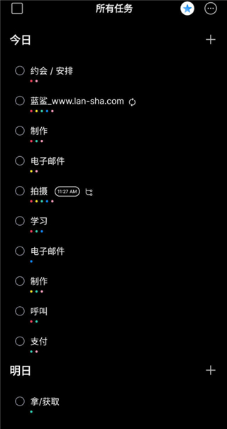 1、待办事项 在清单和项目中计划您所有的待办事项。用颜色标记它们以设置优先级和类别。通过笔记、子任务和附件来提高您的工作效率。用共享列表和分配任务完成更多工作。 2、智能日历 使用日历活动和任务控制您的日、周和月。这是管理时间和实现远大目标的最佳方法。 3、购物清单 购物并不一定是件痛苦的事。有了新的智能购物清单,您可以向Any.do中添加商品,并能看到它们自动按走道排序。为您最喜欢的商店创建大量的商品清单,并与您的爱人分享。 4、提醒 确保您没有遗漏任何重要任务。为重复性事项添加一次性提醒,为每天、每周或每月的约定添加重复提醒,并设置基于位置的提醒,这样您就可以记住在回家的路上买牛奶。 5、每日计划 不要让任务压垮您。有了Any.do Moment这个终极每日计划大师,您可以快速浏览您的日常待办事项,并将它们按优先级排序,这样您就可以只关注那些重要的事情。更新日志