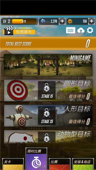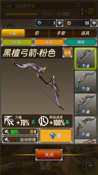 4、购买喜欢的弓箭,越高级,射击的准确率就越高。