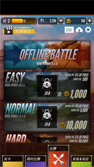 1、通过简单的触摸控制,享受最好的射箭游戏体验。 2、掌握如何衡量风力及其方向的影响,并做出自己的战术来统治比赛。 3、支持多播。 4、支持脱机与模式。 5、明智地使用物品,这将增强您的射箭技巧。 6、享受迷你游戏,赚取有用的物品。 7、在时间比赛中,享受额外的游戏模式。 8、支持16种语言 9、支持成就和排行榜游戏玩法