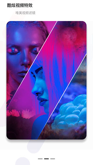 自由的剪辑视频的时长,让您可以轻松的控制视频的时间 为用户提供了许多精美的滤镜,这样就能快速的添加了 选择视频片段可以将视频片段合成,用户的视频才会更好看 预览app提供的视频特效,用户就可以选择合适的视频特效了 还能直接使用视频模板,这样就不需要进行任何的编辑,只需要添加视频内容就可以了