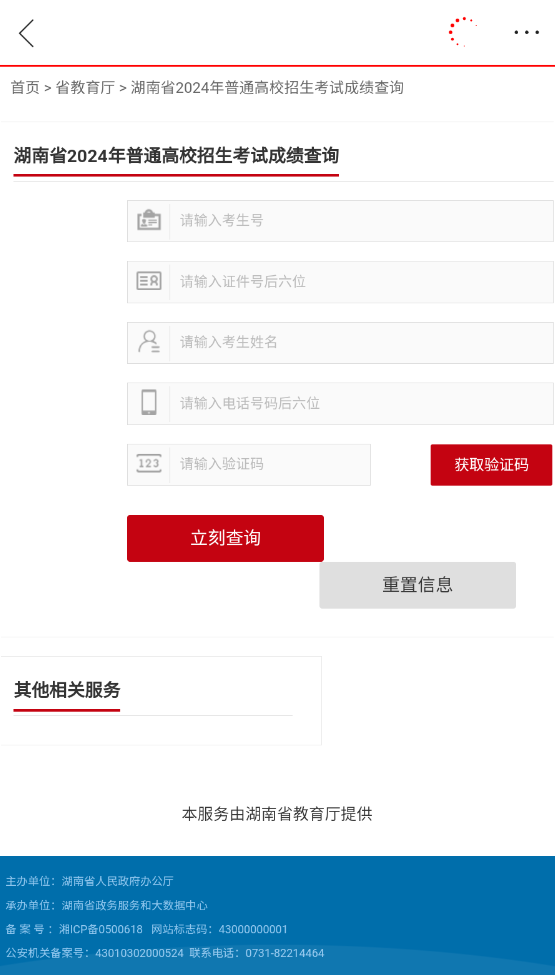 3、输入考生相关信息即可查询(只能查询湖南省地区考生)。