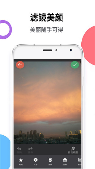 1、【多彩水印】丰富多彩的水印模板,丰富多彩的生活 2、【滤镜拍摄】图片处理可添加各种滤镜,漫风、奶油、白皙等任你选 3、【随心裁剪】各种比例一键裁剪,那个想要哪个不想要随你选择 4、【智能拼图】为您智能挑选最合适的拼图样式、还可以DIY哦 5、【一键分享】WX好友、空间、WB、朋友圈等各大社交平台一键分享软件功能