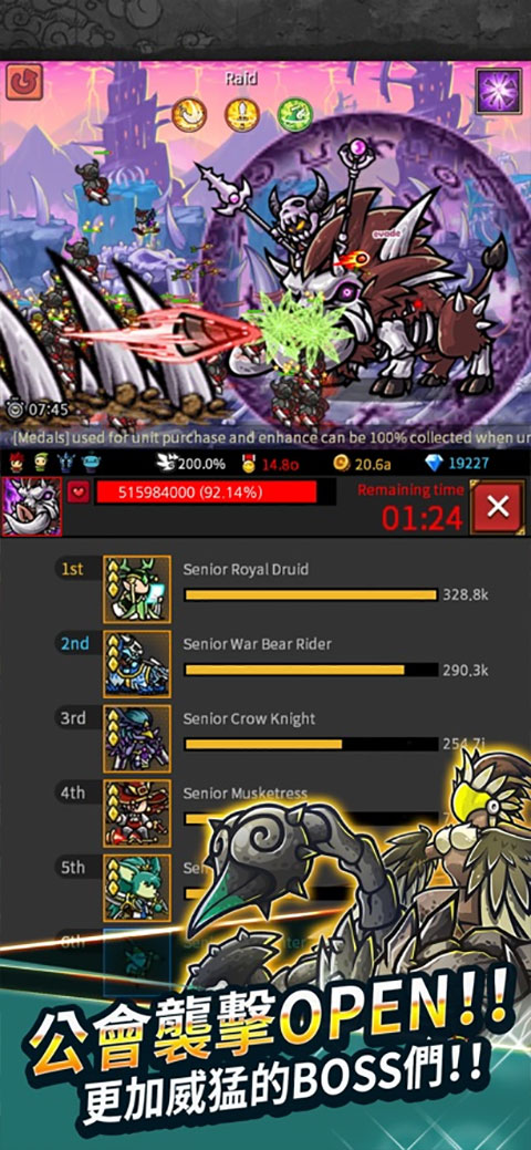1、开放型游戏之最! 2、自动战斗,请欣赏眼前有趣华丽的战斗吧!! 3、自动给予金子。拥有点击乐趣的探索 4、突破4,000 精力,不断展开的情景战斗! 5、今天也复活了吗?请 [复活],获取或是强化强悍的士兵吧! 6、互相拥有不同能力的100余中强悍士兵!升级、强化、进化! 7、消灭20余种独一无二的地下城Boss,获取遗产材料吧!! 8、想要特别的能力吗?将数百种珍贵遗物收入囊中吧!! 9、从天而来的闪电雨吗,天使现身?施展华丽强力的魔法技能吧! 10、在这获取宝石,感受与玩家们的超逼真的多样的PVP战斗吧! 11、给集中的人的礼物哇啦啦啦,点击隐藏在台上的宝箱吧!无尽的边界ios版游戏攻略