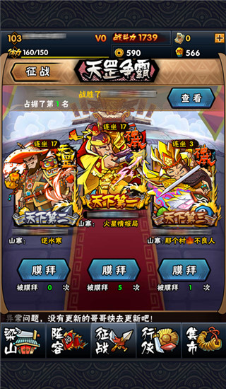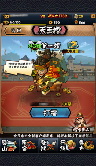 全民水浒作为一款水浒题材的卡牌手游,想必很多玩家都是比较容易上手的。对于没有玩过卡牌游戏的新手玩家来说,小编有以下20点小技巧可以助大家快速的入门! 1、200义气值可以抽武将,很容易得到蓝卡,当然人品爆棚的话,紫卡也有可能。所以多多邀请好友助阵! 2、刷新令可以刷新乾坤商店的物品,义气令则可以进行抽卡。同样有机会抽卡紫卡! 3、多出来的没用的武将可以炼化,跟出售是一个意思的! 4、蓝色武将炼化才可以得到乾石,绿色装备炼化才能得到坤石! 5、宝箱在主页右上角的活动——百宝匣中可以打开! 6、景阳冈一定要刷出老虎,肯定赚!蹴鞠的话,其实钱不多,但是可以快速获得武将的星宿! 7、想要知道VIP对应具体需要充多少钱,点击集市——充值——V特权! 8、相同的装备直接拿去进阶,不用强化,到后面的可以选择的装备非常多! 9、凑齐全紫阵容后,银票可以留着10连抽!没凑齐时有多少抽多少~ 10、不要去压制等级,这游戏需要等级,否则很难过去! 11、魂珠不必太刻意的取刷,先刷副本刷不动了再去刷魂珠转生! 12、鲁智深对于非R来说,还是值得一用的。土豪的要,那就可以无视了! 13、部分蓝卡是需要作为转生材料的,玩家炼化之前一定要了解清楚了! 14、点击武将或者装备3秒即可查看详细信息! 15、阵容的话,前面没有太多的可选择性。有什么带什么吗,到后面有目的性的去收集一些武将,搭配出好的阵容! 16、金翠莲其实是不错的哦!蓝卡中战斗机! 17、前面至少要2豪侠1肉盾,否则后面想3星很困难! 18、加血追击阵是非R相对来说比较好的阵容,武大郎和鲁智深外加一个张开,你懂的! 19、副本过不去的话,要嘛扫荡要嘛刷英雄副本材料! 20、最后,这游戏其实不花太多钱也是可以玩得不错的,至少小编是这么认为的!更新日志