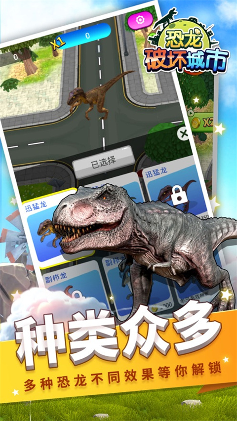 1、大量可选用的恐龙,每种恐龙都有不同的攻击方式,丰富程度让你玩不腻; 2、车辆、树木甚至建筑都可以攻击,广阔的沙盒大地图设定,任你自由驰骋; 3、简单直观的操作方式,任何玩家都可以轻松上手,随时随地开启破坏生涯。恐龙破坏城市ios版恐龙介绍
