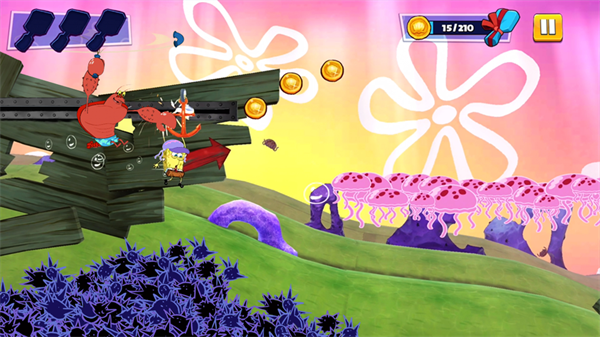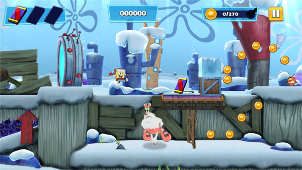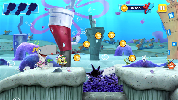 1、深入探索 - 在迄今为止最疯狂的平台跑酷游戏中沉浸在海绵宝宝的世界中! -探索你最喜欢的地点,从比基尼泳裤到手套世界再到密友桶 - 跳上蹦床,避开带刺的水母,并在史诗般的冒险中拉近高空滑索 2、拯救和解锁朋友 - 解锁被困盟友加入你史诗般的水下探索 - 一起旅行收集金币、铲子,完成所有关卡 - 与帕特里克、桑迪、章鱼哥和浮游生物等众多熟悉的面孔互动! - 以海绵宝宝的标志性配音为特色! 3、变形和破解谜题 -变形机器将海绵宝宝变成各种愚蠢的形式 - 每次转变都解锁新的能力并战胜无数的障碍 - 在每个关卡中寻找谜题并揭开秘密! 4、打败坏人 - 从浮游生物到水母王,在具有挑战性的首领战中面对人类或海洋生物已知的最危险的恶棍 -智胜老板并使用他们自己的武器对付他们……所有这些都是为了夺回 Krabby Patty 配方!海绵宝宝蟹堡追击令怎么玩 玩法介绍