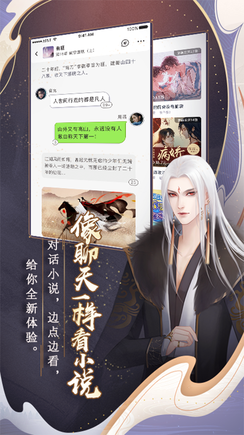 1、精美画面 精致角色立绘,情景漫画还原,精品优选,多元题材,海量独家连载完结,原创聚集。 2、互动体验 互动叙事合辑沉浸式阅读,剧情身临其境,角色感情代入,参与互动选择,导演主角命运。 3、品类大全 海量原创免费作品实时更新,众多分类任你选择:古风玄幻类、都市言情类、穿越宫斗类、架空类、现代明星类、悬疑推理类等互动小说。 还有多种不同标签的作品让你阅读体验:二次元、冒险、校园、后宫、养成、娱乐圈、男性向、完结、重生、网游、逆袭、女尊、历史、政斗、同人、欧风等等互动小说,经典原创免费互动小说作品让你来主导剧情的走向。 免费互动小说、免费小说大全、免费阅读、免费古风小说、免费宫斗小说、免费恋爱小说、闪艺免费互动阅读平台,带你进入阅读新境界。 4、人人皆可创作 一款能够制作玄幻、冒险、恋爱、养成等各类互动文字作品的软件。无需编程,轻松上手,通过简单的入门学习,在短时间内就能制作一款属于自己的作品。 5、热门角色 深情帝王、霸道总裁、温柔学长、神秘明星、高冷女王、个性活泼、呆萌学妹、粉丝迷妹、男女性向游戏迷福音,多种角色等你攻略。作品介绍
