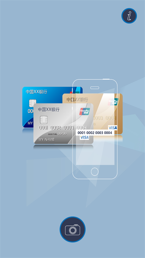 1、自动识别 手机摄像头对准银行卡正面,即自动扫描识别银行卡卡号,识别成功时,手机会振动反馈; 2、卡号核对 需要您对卡号进行核对,提供图文并茂的核对界面; 3、第三方APP调用 您的APP可以直接调用慧视银行卡识别软件,提高您的产品体验 4、自动回填 卡号结果自动回填到您的APP的输入焦点更新日志