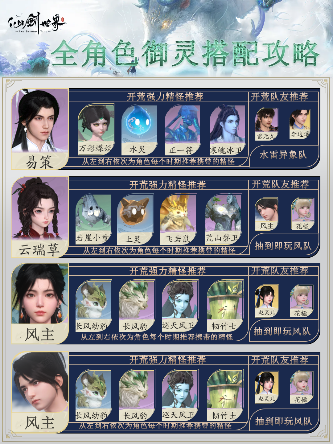 可以打出不错的控制效果,比如水童子的冰冻,地灵子的石化可以给异常角色带上,加快五行反应