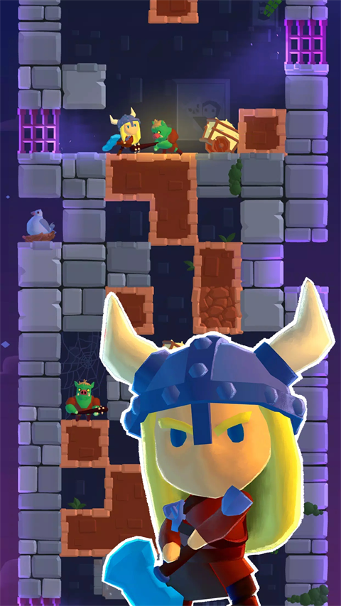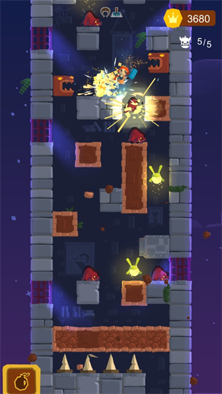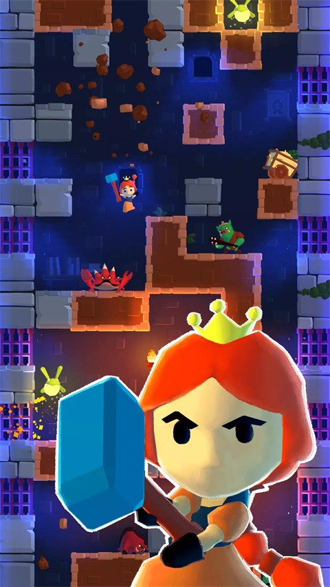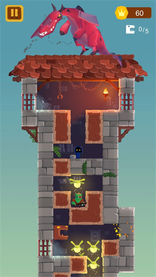 1、游戏中我们只需要向下滑动手指就可以挥动锤子向下攻击,若是土砖块则可以敲碎它们。 2、从而到达下面的区域,不过提醒大家的是石头砖块是敲不碎的,游戏前进时一定要注意道路的选择。 3、在向下逃亡的过程中,除了上面的恶龙会追击我们之外,下面也会有各种怪物和危险的陷阱。 4、当遇到怪物的时候,要么直接从头顶踩它们,或者左右滑动用锤子攻击它们,都可以消灭这些怪物。站上塔楼游戏攻略