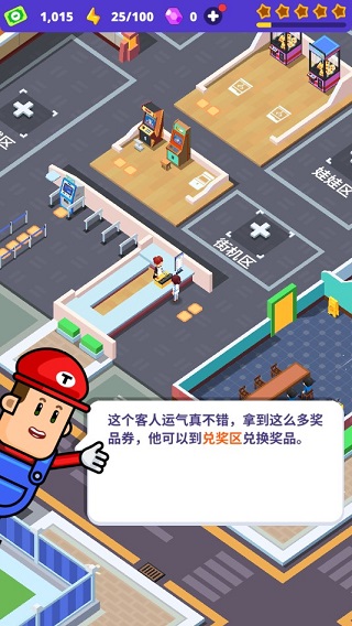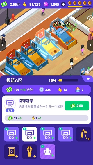 1、全面的游戏设备,投篮、跳舞、赛车等方面的设备应有尽有,让顾客都能够按照自己的喜好尽情的玩! 2、简约绚丽的游戏画面,所有的场景以及游戏当中的角色都是采用了卡通风格设计,独特的视觉效果! 3、超级轻松的操作方式,日常还有各种各样的任务可以完成,让你能够从中得到更多的游戏奖励! 4、游戏模式简单,这种游戏机制很容易就可以被掌握,轻松愉快的游戏节奏可以让玩家非常放松。 5、丰富的道具自由的组合感受新的游戏乐趣,大量的经营过程开启不一样的游戏玩法享受新的乐趣。 6、自由经营感受不同的游戏体验,大量的游戏方式让玩家感受新的游戏过程解锁全新的游戏玩法游戏优势