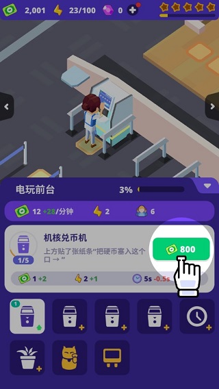 每当客人使用我们的电玩设备,我们就会获得收益,简单来说更好的环境和设备就能赚更多的钱!为此你需要不断更换新的电玩设备,并改造现有环境,通过增加电玩的可选项目来为你的街机游戏厅吸引更多的客人!