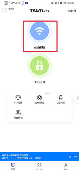 1、打开Hi传输助手,点击【WIFI传输】图标进入