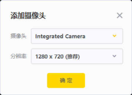 2、点击“打开摄像头”,选择摄像头和分辨率:
