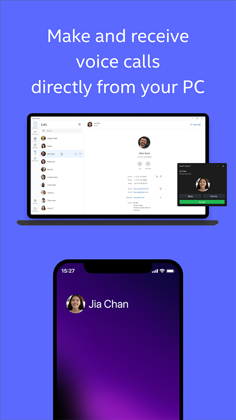 1、文件传输 打造 PC 和 Andriod 或 iOS 设备之间文件快速传输,并通过扩展 PC 功能,让用户通过手机拍摄照片或录制视频,并能够无缝地在 PC 上实现编辑操作。 2、短信 从 PC 发送和接收短信,无需切换设备,即可舒适便捷地使用全键盘和显示器操作。 3、通话 通过访问手机上完整的联系人列表,用户可以直接从 PC 拨打和接听语音电话。 4、电话通知 从 PC 接收和管理电话通知,让用户能够保持时刻连接并操作控制。Intel Unison安卓手机版怎么用