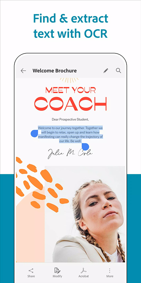 Adobe Scan手机版是一款Adobe公司推出的扫描应用,里面内置强大的OCR识别系统,你既可以方便的扫描文件制作成PDF文档,而且对于一些重要的文字可以直接使用OCR功能识别保存,非常的方便。Adobe Scan最强大的莫过于它可以使影像内的图形继续保存。