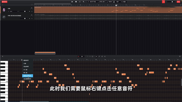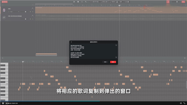 6、接下来使用鼠标右键点击任意音符,点击编辑全部歌词;