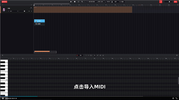 2、进入软件后右击轨道区域处,接着点击导入MIDI;