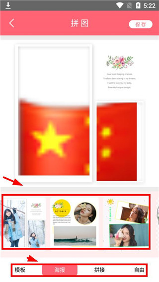 4、点击拼图,也提供了多种拼接格式模板、海报等素材任你挑选