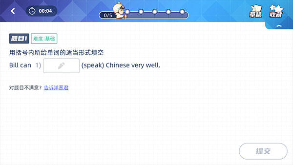 3、开始练习,点击即可填写答案,然后点击“提交”,右上角还可以收藏题目。