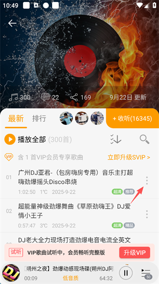 1、【VIP会员】 随时在线听SQ无损、超高清音质,音质更清晰,给您不一样的体验; 2、【好听音乐】 汇聚国内最多DJ作者,每天发布好听的DJ舞曲; 3、【串烧大赛】 每月不定期举行“娱乐杯”串烧大赛; 4、【无损音质】 多重音质选择,无损品质享受; 5、【同步收藏】 同步“我的收藏”,跨平台无缝使用; 6、【智能线控】 智能切换,听歌电话两不误; 7、【网络换肤】 数十款皮肤任意选择; 8、【个性推荐】 根据你的听歌习惯,每天为你推荐喜欢的内容。DJ音乐盒App怎么下载歌曲